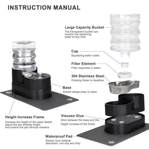 Superior Material: The drinking basin is made of top-grade 304 stainless steel, which is durable, effectively resisting deformation and rusting, guarding the purity of water, and escorting the healthy growth of pets. In addition, the bottom of the drinking bowl is equipped with a high-grade waterproof liner, which utilizes high-quality waterproof materials to not only eliminate water residue and keep the floor dry and clean, but also moderately reduce the friction between the drinking bowl and the floor, carefully protecting your floor from damage.