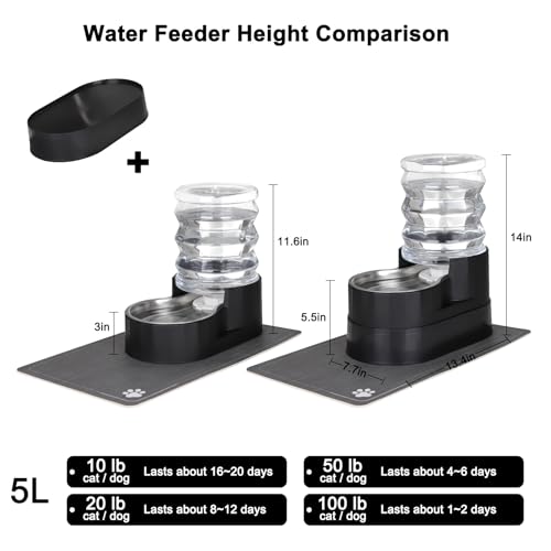 Efficient Water Storage: Designed for small to large pets, this automatic water feeder ensures that the 5-Liter capacity is large enough to cover your pet’s water needs throughout the day, thanks to the slow replenishment mechanism of natural gravity and the significantly longer refill intervals. Whether the owner is on the go or busy in their daily life, they can rest assured that their pets will have a worry-free water supply.
