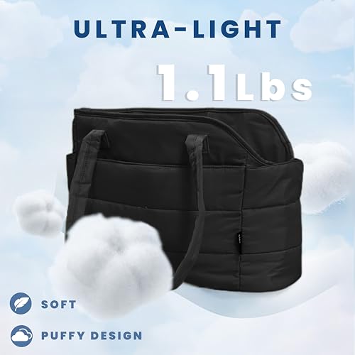 STRAODTIC Lightweight Dog Purse Carrier for Small Dogs Under 15 lbs, Puffy Quilted Pet Carrier Tote for Puppies with Safety Leash Clip, Women’s Hands-Free Dog Carrier Bag for Travel/Shopping (Black)
