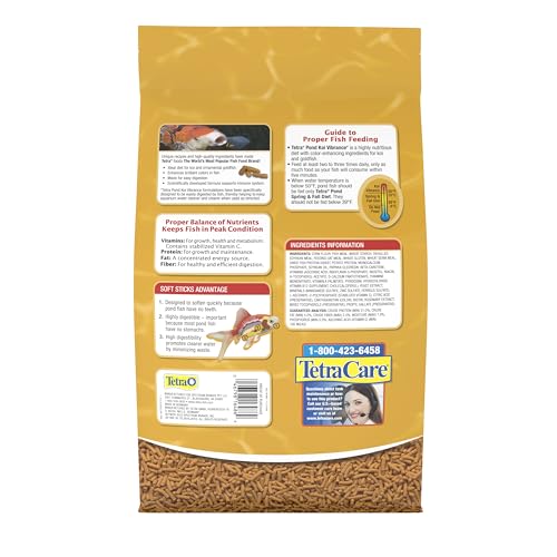TetraPond Koi Vibrance pond fish food is a highly nutritional diet for all sizes of koi and ornamental goldfish. This formula brings out the vibrant reds and yellows of these pet pond fish. Supplies nutrition for energy, longevity and overall health – feed in spring, summer and fall when water temperatures are 50 degrees and above. This formula contains vitamins for growth, health and metabolism; amino acids for growth and maintenance; fats for a concentrated energy source; and fiber for healthy and efficient digestion. TetraPond Koi Vibrance food is designed to soften quickly for toothless pond fish. It’s highly digestible to help promote clear water and minimize waste. Feed at least two to three times daily, only as much food as your fish will consume within five minutes. When water temperature is below 50 degrees, pond fish feed with TetraPond Spring & Fall Diet. Fish should not be fed when the temperature is below 39 degrees. Since 1951, Tetra has developed the world’s most comprehensive body of fish food knowledge, and fishkeeping enthusiasts have looked to the brand for products and solutions that add ease and beauty to their home. Whether you’re an experienced hobbyist or just starting out, Tetra has everything you need – from a large variety of quality fish food and innovative equipment to test kits and decor.