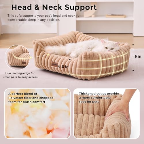 Superior Support: The raised sides filling with plush shredded foam, providing perfect head and neck support for ultimate relaxation, offering a sense of security for pets, effectively reducing anxiety. The low leading-edge design also ensures easy access for your pet. The rectangular shape design creates a safe haven, perfect for rest and stretch.